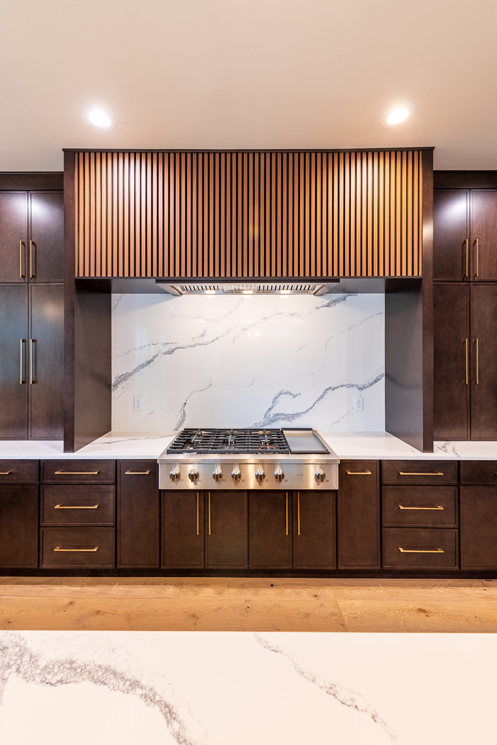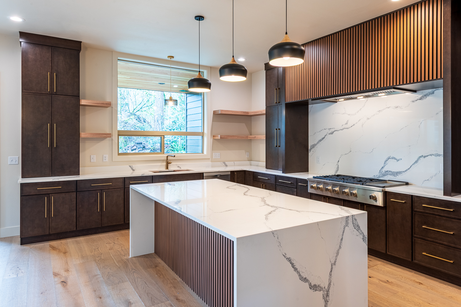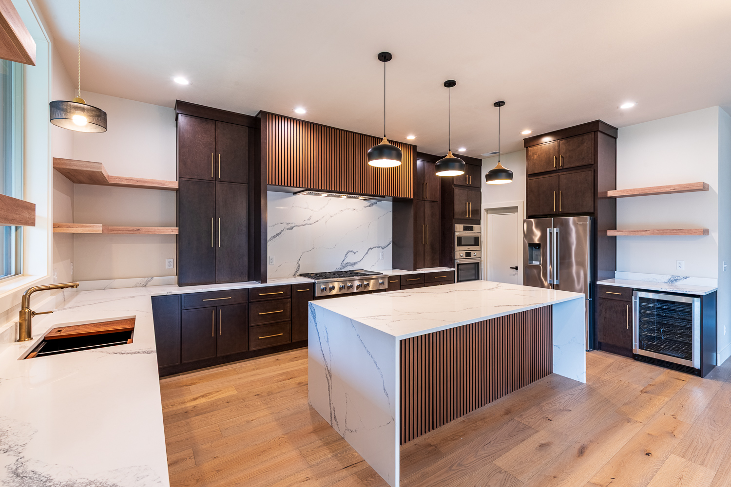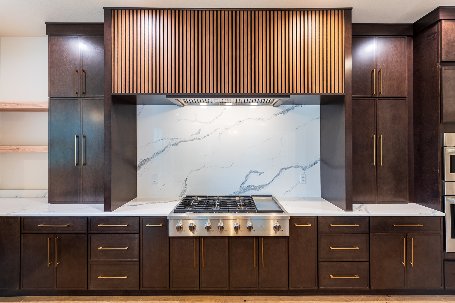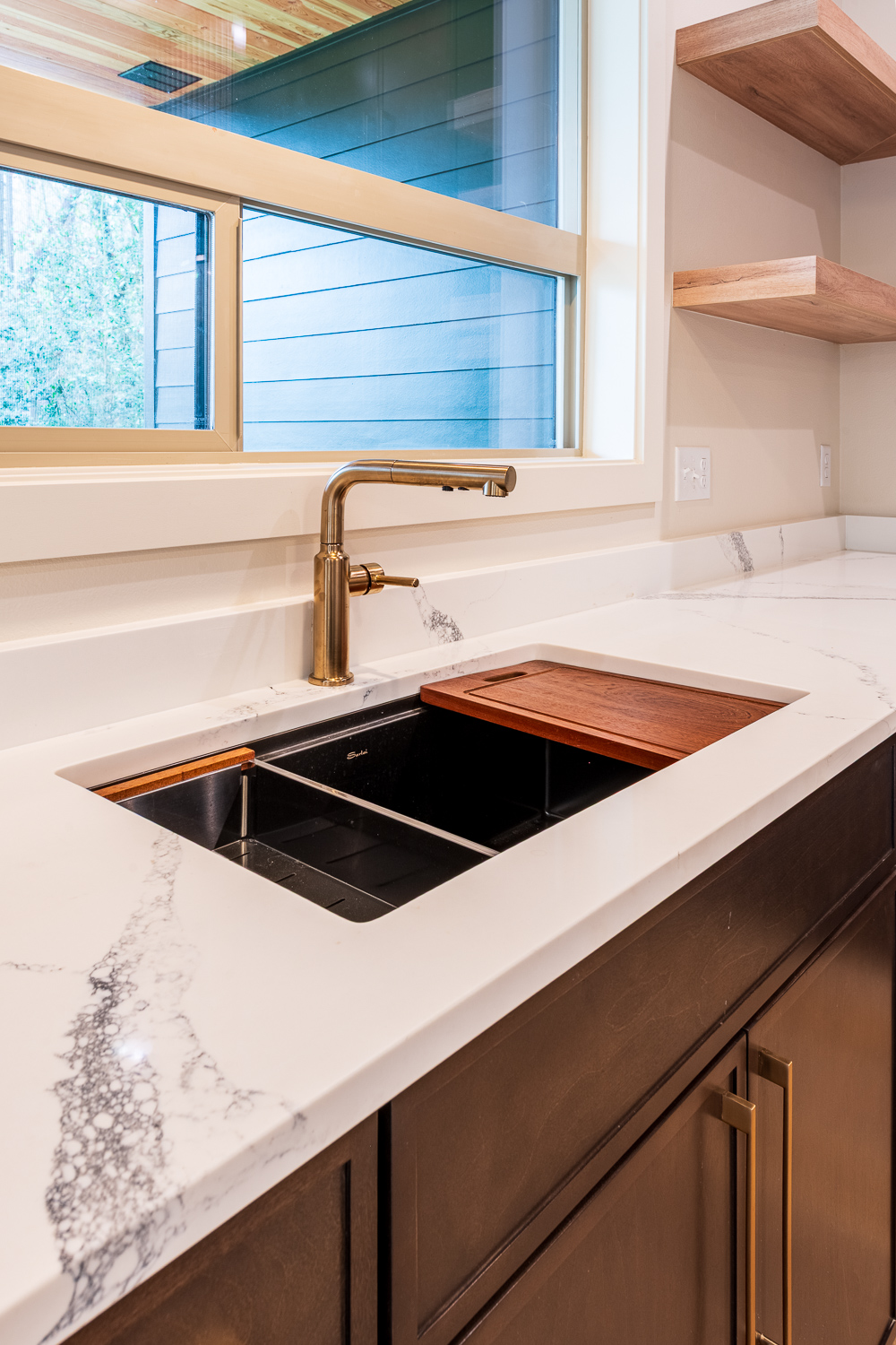 - Full quartz backsplash